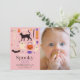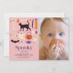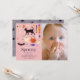 Este convite de foto de aniversário de 1 ano de menina "spooky one" para o Halloween apresenta um fundo rosa com motivos de Halloween, incluindo um gato preto, morcego, fantasmas, abóbora, doces, vassoura, esqueleto, lábios de vampiro e globo ocular. O verso apresenta um fundo roxo com padrões de teia de aranha. Personalize-o de acordo com as suas necessidades. Você pode encontrar produtos correspondentes na minha loja.