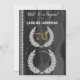 Um elegante convite de aniversário surpresa personalizado com a 70 dourada de número dourado num padrão de seda preta decorado com pérolas brancas. O número e a foto são enquadrados com um padrão de diamante de louros.