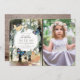 Este convite para o aniversário de uma garota engraçada e engraçada mostra sua foto e uma coroa de flores brancas e folhagem verde com borboletas azuis e animais de floresta que são uma raposa e um esquilo em um fundo de floresta encantado. O verso apresenta padrões de madeira castanha. Perfeito para comemorações ao ar livre no jardim, no quintal, na floresta ou no parque. Personalize-o para as suas necessidades. Você pode encontrar produtos correspondentes na minha loja.