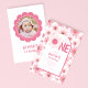 Crie seu próprio convite de fotos de aniversário de margarida rosa selvagem um rosa! Personalize esta design com o seu próprio texto e adicione uma fotografia fofa do seu filho no verso. Você pode personalizar ainda mais este design selecionando o botão "Editar Detalhes", se desejar.