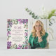 Marque um marco notável com este elegante convite de aniversário de fotos florais roxas. Projetado com um quadro de rosas de aquarela, lilases e verde, o layout mostra os detalhes da celebração de um lado e uma foto personalizada do convidado de honra do outro. Perfeito para honrar um 90, este design combina sofisticação e calor, criando uma manutenção significativa para que a família e os amigos tesouros.