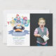 O convite de fotos de aniversário deste menino bonito mostra um coelho coelho olhando do chapéu de um mágico com estrelas de ouro falsas/falsas, bandeiras de bunting e balões coloridos em aquarela. O verso apresenta um fundo branco com bolinhas. Personalize para suas necessidades. Você pode encontrar mais produtos correspondentes na minha loja.