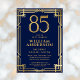 Este marinho fabuloso, azul e convite de aniversário de ouro, com o 85º , apresentando o número 85 em ouro com fontes modernas cercadas por um desenho de arte em ouro na frente e sua foto favorita do convidado de honra no verso seria perfeita para pedir às pessoas que se juntem a vocês enquanto celebram o homem no 85º aniversário da sua vida. É tradicional e clássico enquanto é fresco, moderno e contemporâneo. Para ver seus convites exclusivos, selecione "Personalizar este modelo" e digite suas informações e carregue uma foto. É super fácil!