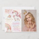 Convites Foto de Aniversário do Pastel Dourado Rosa Unicorn