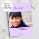Um fundo colorido violeta e lavanda. Personalize e adicione sua foto e obrigado nota. Texto roxo.