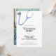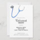 Convite de foto de aposentadoria médica com uma ilustração de um estetoscópio, perfeito para enfermeiros, médicos e outros cuidadores. São elegantes e simples com um design brilhante. Ilustrado e projetado por Patricia Alvarez.