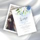 Convite de casamento moderno e sem tempo elegante com fundo fluido de aquarela e sotaques florais em azul, verde e branco. Rosas, lírios e verde destacam o sentimento de romance e elegância. Cabeçalhos com script equilibram a tipografia serif em preto com pontos focais azuis. A parte traseira do cartão contém uma grande foto pessoal. Um convite sofisticado que é perfeito para casamentos ao longo do ano e dá um tom para um caso de na moda. ❀ ❀ Convite disponível com várias opções de retorno: vazio, foto e convite all-in-one (detalhes do evento, RSVP, etc.) ❀ elementos de texto ❀ são facilmente personalizáveis. No entanto, por favor, procure ajuda para personalizar ou personalizar a design para ajustado de seus desejos individuais. Além disso, procure ajuda para criar produtos relacionados para criar seu pacote perfeito de artigos de papelaria.