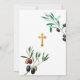 Um belo design batismo mostrando azeitonas aquáticas e verde moldando sua foto de bebê e uma Cruz de ouro no verso do cartão. Um design religioso ideal para o Natal Batismo de um bebê ou de uma menina. Papelaria e decoração correspondentes podem ser vistos nesta coleção de designs.