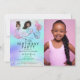 Convite de aniversário de sereia de uma garota com uma foto personalizada para qualquer idade. Convidado de festa de aniversário infantil com sereias de cabelos negros e design de aquarela com brilho sujo no fundo. Altere a cor de fundo rosa clicando no botão para editar o design.