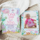 Foto de Baleia Rosa Abre o primeiro aniversario do Mar Convite Um belo convite para o primeiro aniversário do mar, com várias criaturas marinhas, como uma baleia rosa, tartaruga marinha verde, água-viva e muito mais. Ideal para um convite de aniversário do primeiro ano do temor submarino e mostra uma foto no verso.