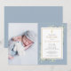 Convites Foto de Batismo de Azul Empoeirado com Verde Folha