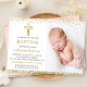 Convites Foto de Batismo de Menina Dourada Rosa Elegante
