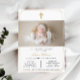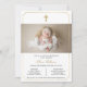 O Dourado convite para o batismo moderno e elegante apresenta a foto do solteiro do bebê, a cruz dourada e os detalhes do evento na frente. Personalize ainda mais com outra foto atrás.