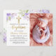 Convite Fotográfico de Batismo Floral Púrpura de Aquarela Elegante