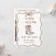 Celebre seu amor com um charmoso Save the Date boho rústico ocidental com botas de cowboy e uma foto personalizada. Perfeito para casamentos no campo, celeiro, rancho ou ao ar livre, este design combina o calor boho com o charme rústico ocidental. Personalize facilmente nomes, data, foto e detalhes para combinar com o seu dia especial.