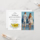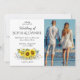 Compartilhe sua data de casamento com nosso adorável convite de casamento com girassóis, flores silvestres azuis e uma foto. A design inclui girassóis e flores silvestres azuis, para um aspecto bonito e elegante, perfeito para anunciar seu casamento. As fontes de na moda fazem o convite parecer refinado e garantem que os detalhes do seu casamento sejam fáceis de ler. Este convite combina girassóis, flores silvestres e texto elegante para uma forma bela e memorável de convidar seus convidados.