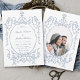 Convites Foto de Casamento Azul Dusty com Quadro Floral Clá