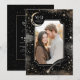 Este convite de casamento celestial é incrivelmente romântico e único, revelando a história do seu amor desde o primeiro olhar. Sua foto, talvez uma foto de noivado, será emoldurada por uma cena de meia-noite preta repleta de estrelas douradas, lua, planetas e uma estrela cadente. É como ler uma história encantada apenas olhando para a capa, como se o seu amor fosse verdadeiramente "Escrito nas Estrelas". Este é o mais lindo convite de casamento com foto, capturando a essência mágica do seu dia especial.