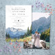 Este convite de casamento para um casamento íntimo com ilustração em aquarela de montanha floral pode ser personalizado com suas informações em tipografia sofisticada e uma foto especial no verso. Desenhado por Thisisnotme©