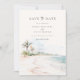 Cena de Aquarela de Praia Tropical, Foto para Salvar a Data.