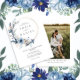 Convites Foto de Casamento de Quadro Floral Azul-Inverno
