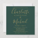Apresentando nomes elegantes de estilo de assinatura de ouro e sua foto escolhida, este convite de casamento de na moda pode ser personalizado com seus detalhes de casamento em tipografia quic em um fundo verde esmeralda. Projetado por Thisnotme©