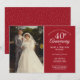 Personalize com a sua foto de casamento favorita e os detalhes da sua celebração especial de 40 anos de casamento com tipografia branca elegante em um fundo vermelho rubi. O verso apresenta confetes de coração de amor rubi. Concebido por Thisisnotme©