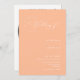 Este elegante convite para o casamento apresenta uma design refinada com um texto romântico em forma de arco que inclui as palavras "Casamento de" elegantemente escritas no topo, acrescentando um toque formal e eterno num fundo de pêssego. Aliado à tipografia serif limpa e a uma escrita manual moderna, esse convite minimalista é perfeito para casais que buscam um equilíbrio entre sofisticação e simplicidade. O design também inclui espaço para uma foto do casal e um código QR na parte traseira para opções de RSVP sem problemas. Tente se tornar ecológico com este convite moderno, tudo em um, ecológico, reduzindo o RSVP adicional e os cartões de detalhes. Basta adicionar seu próprio código QR à parte traseira do convite para seus convidados para RSVP e descobrir mais informações sobre seu casamento. Personalize os nomes e o texto em apenas alguns passos fáceis e personalize o cartão de convite com sua foto do casal feliz para lhe dar um toque exclusivo e pessoal. Por favor, note: o texto geométrico circular de "Por favor, junte-se a nós para o" juntamente com a elegante e bela tipografia de "Casamento de" na frente do convite E a menção "gentilmente responda por" no verso do convite juntamente com outros elementos gráficos trabalho de arte, como as linhas, não podem ser editadas, alteradas, movidas ou eliminadas. Eles estão consertados. Se precisar alterar a cor, você pode personalizar o cartão de convite. Você pode personalizar facilmente este convite com seu próprio texto e compartilhá-lo digitalmente através de texto, email ou mídia social. Como alternativa, você pode enviar uma versão impressa para seus convidados ou fazer ambos — enviar uma versão digital e acompanhar uma cópia impressa para obter uma experiência mais personalizada.