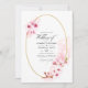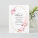 Convite de casamento floral de primavera cor d'água cor rosa com sakura florssom com quadro geométrico dourado personalizável para suas especificidades de evento. Ideal para qualquer tema ou casamento de jardim. A foto no verso é opcional. Se você a remover, role para baixo até a parte inferior de "Personalizar este modelo" e clique em "Editar usando a ferramenta Design". Na Ferramenta Design, você pode editar, dimensionar, excluir ou mover qualquer texto ou elemento design.