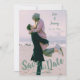 Adicione sua foto favorita a este estilo moderno, Salve o Cartão de Anúncio de Casamento de Data, com sua foto de casais favorita. O texto frontal inclui: Salvar a data, os primeiros nomes da noiva e do noivo, a data de casamento e o convite formal a seguir. Para personalizar, basta substituir o exemplo de foto usando nossa modelo fácil para inserir sua imagem. Clique em: Preencher para cobrir a frente. Em seguida, adicione os detalhes do texto no modelo, substituindo o mesmo texto.