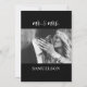 Convites de casamento elegantes, clássicos, modernos e simples personalizados, feitos em preto e branco. Letras topográficas com minúsculo coração. A parte traseira do cartão tem fundo preto e o sobrenome mrs & mrs com foto / foto. Perfeito para qualquer época do ano, tema. As cores podem ser personalizadas.