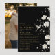 Convites Foto de casamento floral em dourado e preto com pa