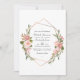 Convite para casamento de cor d'água, cor-de-rosa e rosa, cor-de-rosa esmagada e rosa de ouro com uma estrutura geométrica dourada. Ideal para qualquer tema ou casamento de jardim. O código QR no verso direciona para o seu local de casamento onde o pessoas pode aprender mais e rsvp.