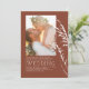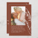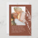 Deixe seu convite refletir você e seu amor. Com esta design moderna, você pode tirar uma das fotos que são especiais para vocês dois e torná-las o ponto central deste convite. Estes elegantes convites para o casamento de terracota são simples e têm um design minimalista limpo com algumas leituras de grama de pampas à volta da sua foto. A laranja queimada é uma cor popular este ano, fazer que é a escolha perfeita para a sua queda de vassoura ou casamento de verão moderno. Seu dia de casamento é um momento importante em sua vida e um convite fotográfico tem tudo que você precisa para criar um anúncio inesquecível de casamento.