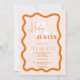 Um convite legal a negrito com nomes personalizados com uma caligrafia escrita à mão e uma letra serif, 2 nomes, 2 estilos com a fotografia de casamento ondulada do Retro Teracotta. Todos os textos, nomes e cores de fundo são personalizáveis para você misturar e combinar com seu pacote de casamento.
