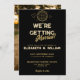 Este convite de casamento para a discoteca moderna, preto e ouro, pode ser personalizado com sua informação na tipografia moderna e uma foto especial no sentido inverso. Projetado por Thisnotme©