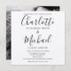 Apresentando nomes elegantes de estilo de assinatura juntamente com a sua foto escolhida, este convite de casamento rústico minimalista na moda pode ser personalizado com os detalhes de seu casamento em letra chic preta. Projetado por Thisnotme©