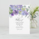 Convite de casamento tradicional com folhas de eucalipto e plantas suculentas misturadas com flores em acentos de lilás pastel, roxo e violeta. Ideal para qualquer tema ou casamento de jardim. A foto no verso é opcional. Se você a remover, role para baixo até a parte inferior de "Personalizar este modelo" e clique em "Editar usando a ferramenta Design". Na Ferramenta Design, você pode editar, dimensionar, excluir ou mover qualquer texto ou elemento design.
