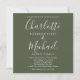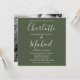 Apresentando nomes elegantes de estilo de assinatura e sua foto escolhida. Este convite para o casamento de na moda pode ser personalizado com seus detalhes em tipografia quic num fundo verde-oliva. Você pode personalizar a cor de fundo para corresponder ao seu tema de casamento. Projetado por Thisnotme©
