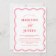 Convites Foto de Casamento Vermelho Cor-de-Rosa Onda