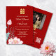 Este convite floral apresenta uma pintura aquosa de uma flor de lótus e um símbolo de felicidade dupla num tom cor-de-rosa correspondente num fundo vermelho. No verso está um código qr digitalizável para seu site de casamento e uma foto personalizada.