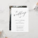 O convite para casamento de fotos em preto e branco da tendências elegante com o texto "o casamento de" com um script de caligrafia e o CÓDIGO QR (gerado automaticamente). Personalize-o com sua foto de noivado no verso e seu texto. +++++++++ Este convite de casamento é adequado para cerimônias e recepções formais de casamento no estilo moderno.