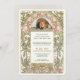 Celebrar a vida de seu amado com nossa Alphonse Mucha Lily Foto Celebração do Convite à Vida. Apresentando as serenas e graciosas flores de peônias de uma trabalho de arte de 1920 pelo famoso artista de Art Nouveau Alphonse Mucha, este convite proporciona uma forma sensata e comovente de honrar a memória dos falecidos. O modelo personalizável permite que você inclua uma foto apreciada de seu ente querido, assim como adicionar detalhes pessoais do serviço de memórias, e quaisquer mensagens ou memórias especiais. Este convite significativo captura a essência de uma vida bem-vivida e o amor que persiste, fornecendo conforto e consolo durante esse tempo de memória.