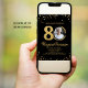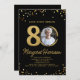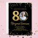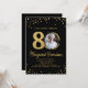Celebre em estilo este convite de aniversário de 80 diversão e festivo com a foto do aniversariante emoldurada por sotaques de brilho dourado e um espantoso fundo preto. Clássico e elegante, mas super divertido e festivo - o convite perfeito para fazer a cara/garota de aniversário se sentir especial. Por favor, veja a coleção de anos cheia de decoração e suprimentos de aniversário correspondentes. Este convite está disponível no impressão e no download instantâneo.