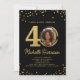Celebre em estilo este convite de festas de aniversário de 40 anos diversão e festivo com a foto do aniversariante emoldurada por sotaques de brilho dourado e um espantoso fundo preto. Clássico e elegante, mas super divertido e festivo - o convite perfeito para fazer a cara/garota de aniversário se sentir especial. Por favor, veja a coleção de anos cheia de decoração e suprimentos de aniversário correspondentes. Este convite está disponível no impressão e no download instantâneo.