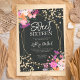 Primavera chic, cor-de-rosa-verão, cor de água floral roxa e laranja e tipografia de confetti com brilho dourado 16 anos com flores pintadas à mão, ramos de folha de aquarela verde com estrutura de terrário geométrico dourado em fundo escuro, perfeito para todas as estações festa de aniversário, adicione sua foto no fundo