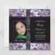 Convites Foto de Damasco Preto Roxo Festa 16 Doce