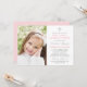 Este elegante convite da Primeira Comunhão desenhado para uma menina apresenta uma foto de 3,5 x 5" da sua filha com um texto cor rosa-na moda, prateado e cinza que pode ser totalmente personalizado para o seu evento, acentuado por uma cruz colorida de cinza de seda. Uma rosa claro de fundo com um padrão branco de pontos suíços se veste na parte de trás do cartão.