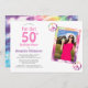 Esta divertida e groovy design apresenta o texto "Você é convidado para uma Festa de aniversário do Far Out 50th for" em rosa, roxo e cinzas na tipografia popular, juntamente com um texto personalizável e uma foto que você pode substituir com sua própria, dentro um legal quadro de gravata pastel com símbolos de paz semelhantes ao estilo do tipo tie-dye 1960 nos cantos. O verso do convite apresenta o mesmo padrão de coloração de gravata pastel. Você pode personalizar este item para seu próprio evento alterando o texto e a foto no modelo do produto.