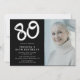 Convite Fotográfico de aniversário de 80 de Trendy. O design apresenta uma fotografia da sua escolha num fundo preto, com um modelo simples de texto branco, fácil de personalizar. O número oitenta é uma diversão, uma tipografia de pincel que dá a este convite uma sensação moderna.
